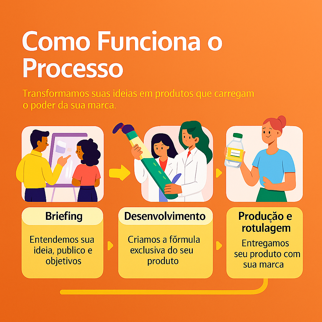 - 🧪 Desenvolvimento — criamos a fórmula exclusiva do seu produto.